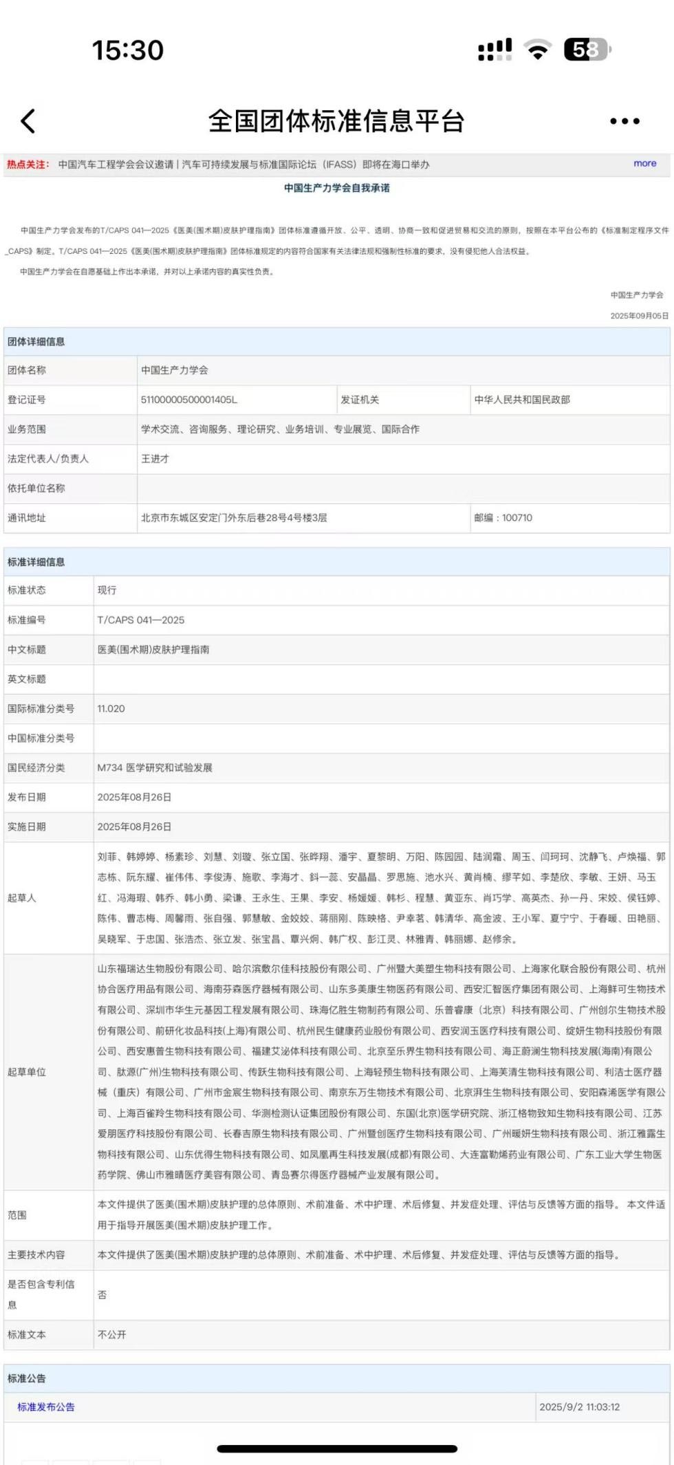 Saildar Medical ເຂົ້າຮ່ວມໃນການພັດທະນາ "ຄໍາແນະນໍາກ່ຽວກັບການດູແລຜິວຫນັງຂອງຄວາມງາມທາງການແພດ (Perioperative)" ມາດຕະຖານກຸ່ມທີ່ເປີດເຜີຍຢ່າງເປັນທາງການ
